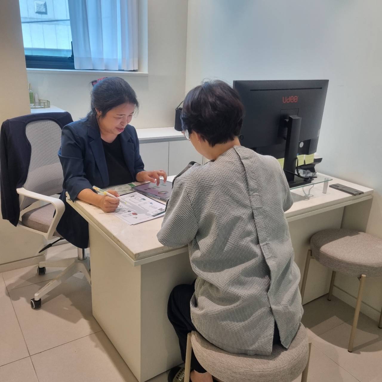 상담사는 환자분의 보험 증권을 검토해 보장 내용과 청구 절차를 안내하며,