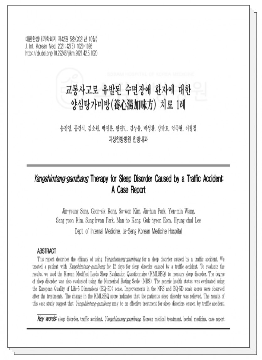 오늘은 자동차 사고 후 나타난 수면장애를 한방치료로 개선한 논문을 함께 보겠습니다.